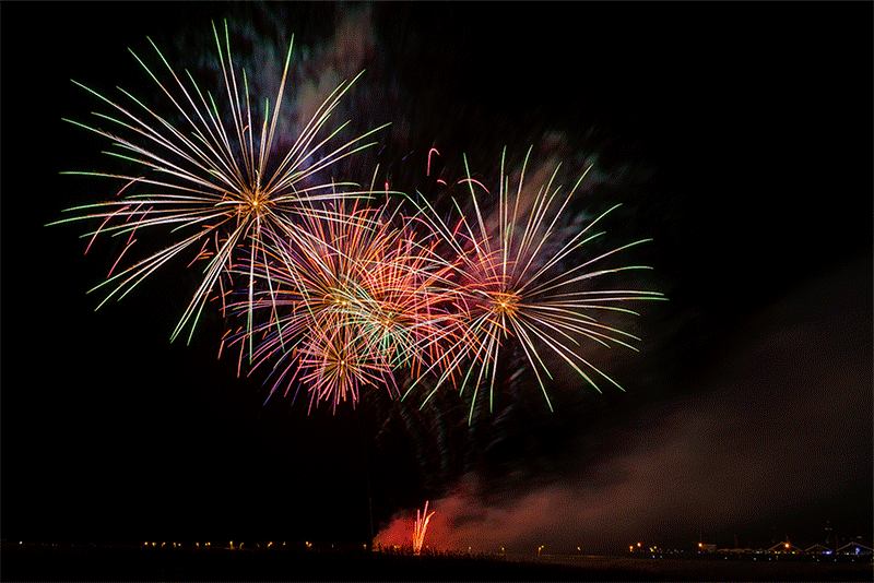 Silvesterfeuerwerk 2019/2020 auf der Seebrücke, St.Peter-Ording. Mittwoch (Neujahr), 1. Januar 2020 um 00:05 bis 00:15 Uhr. Foto © Copyright by Holger Tange