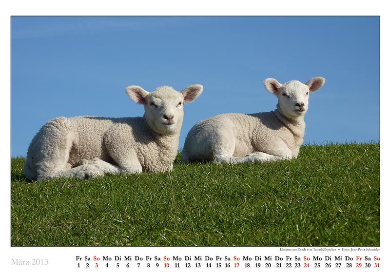 März 2013: Lämmer am Deich von Tetenbüllspieker / Foto von JP Schneider.