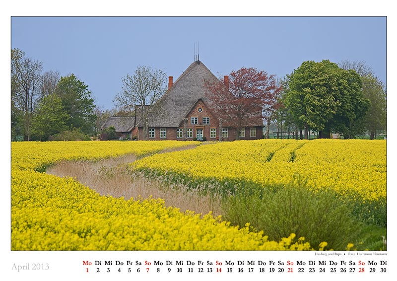 April 2013: Haubarg und Rapsfeld in Warmhörn / Foto von Hermann Timmann.