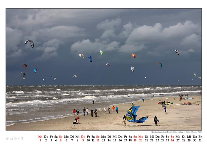 Mai 2013: Kite-Surfer am Strand von St.Peter-Ording / Foto von Thomas Pfaff.
