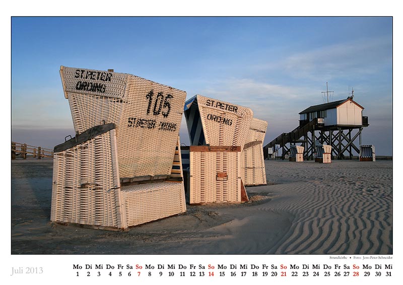 Juli 2013: Strandkörbe im Abendlicht / Foto von JP Schneider.