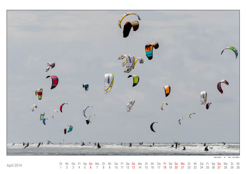 April 2014: Kitesurfer vor St.Peter-Ording / Foto von Jörn Meier.