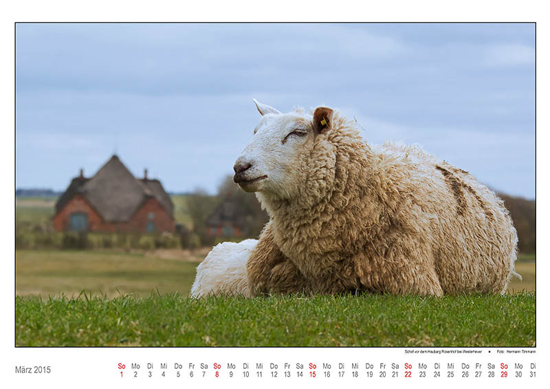 März 2015: Schaf vor dem Haubarg Rosenhof bei Westerhever / Foto von Hermann Timmann.