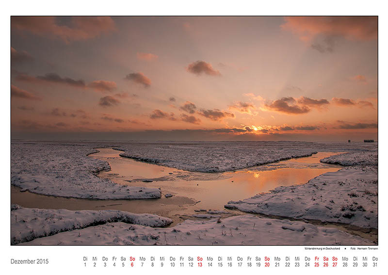 Dezember 2015: Winterstimmung im Deichvorland / Foto von Hermann Timmann.