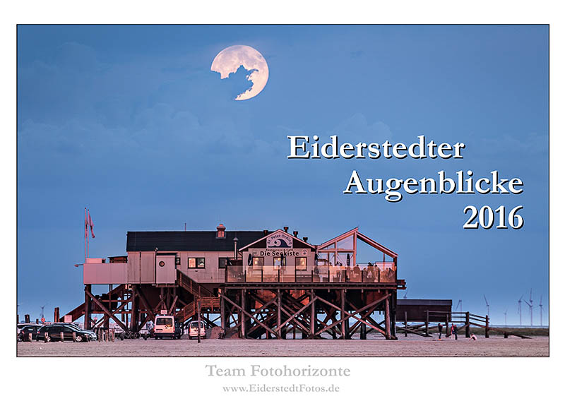 Titelseite 2016: Mondaufgang am Strand von St.Peter-Ording / Foto von JP Schneider