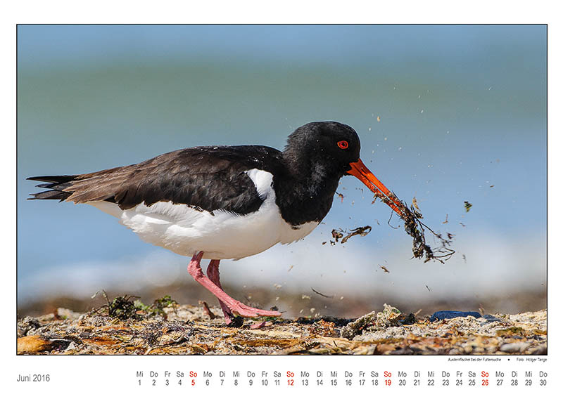 Juni 2016: Austernfischer bei der Futtersuche / Foto von Holger Tange.