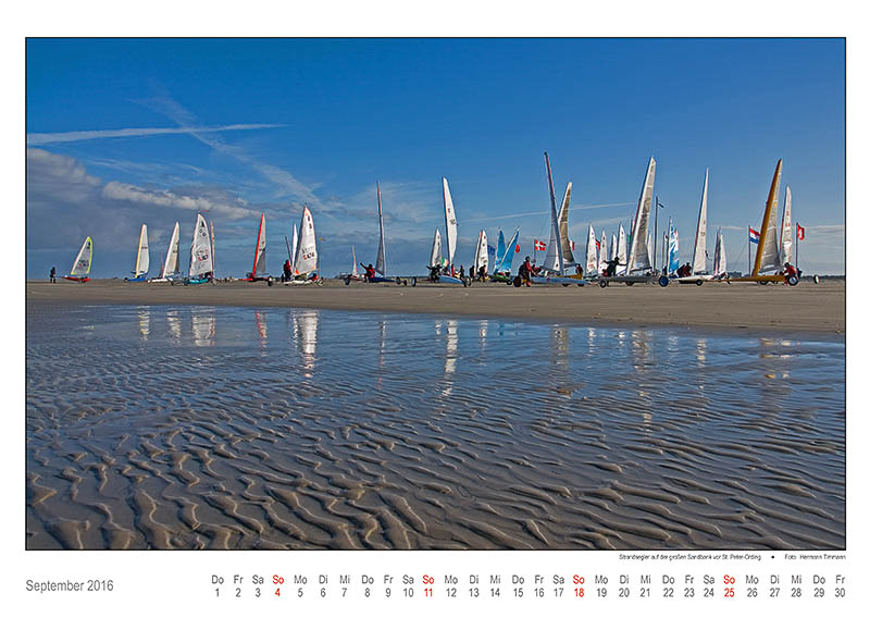 September 2016: Strandsegler auf der großen Sandbank vor St.Peter-Ording / Foto von Hermann Timmann.