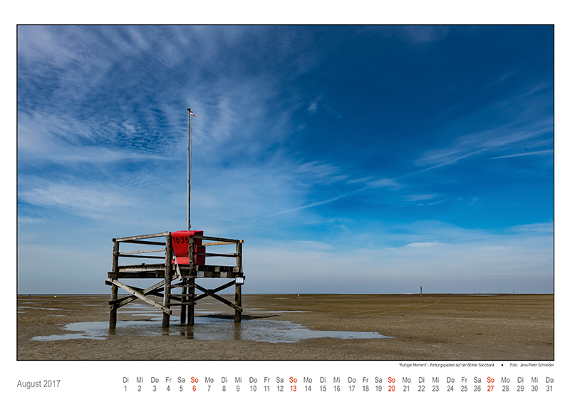August 2017: Ruhiger Moment. Rettungspodest auf der Böhler Sandbank. / Foto von JP Schneider.