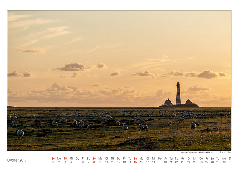 Oktober 2017: "Leuchtturm Westerhever" Schafe im Deichvorland. / Foto von Jörn Meier.