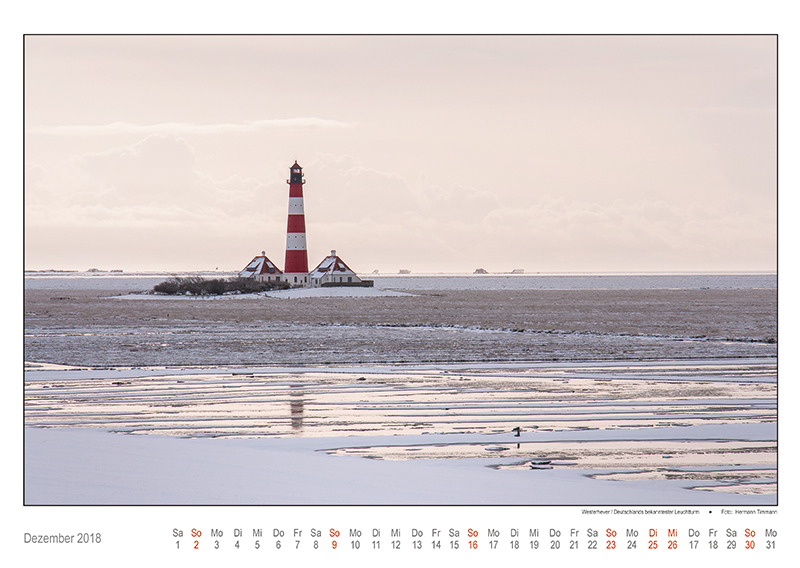 Dezember 2018: Westerhever / Deutschlands bekanntester Leuchtturm. / Foto von Hermann Timmann.