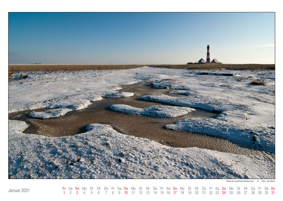 Januar 2021: Winter am Leuchtturm Westerhever / Foto von Jörn Meier