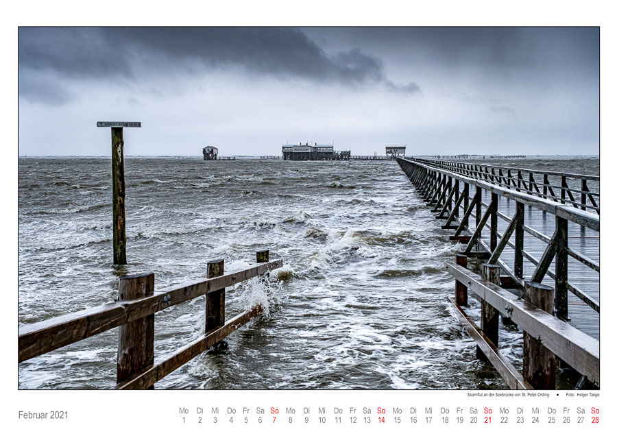 Februar 2021: Sturmflut an der Seebrücke von St.Peter-Ording / Foto von Holger Tange