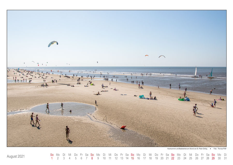August 2021: Hochsommer und Badebetrieb am Strand von St.Peter-Ording. / Foto von Thomas Pfaff