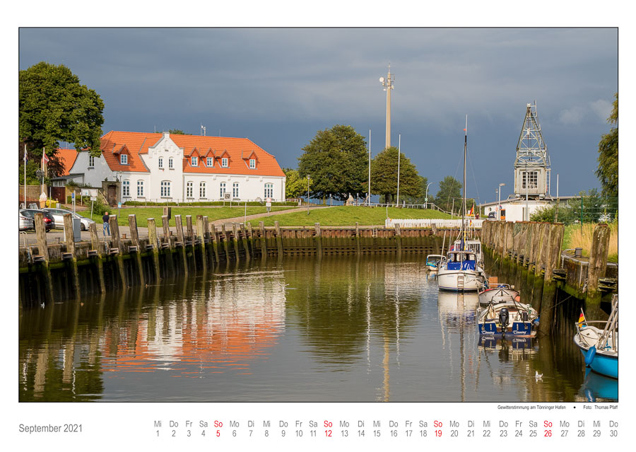 September 2021: Gewitterstimmung am Tönninger Hafen / Foto von Thomas Pfaff.