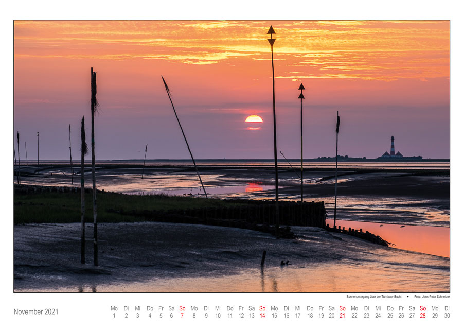 November 2021: Sonnenuntergang über der Tümlauer Bucht. / Foto von JP Schneider.