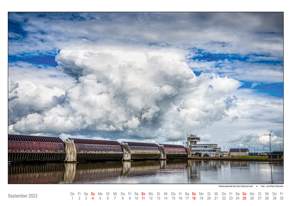 September 2022: Wolkenspektakel über dem Eidersperrwerk / Foto von JP Schneider.