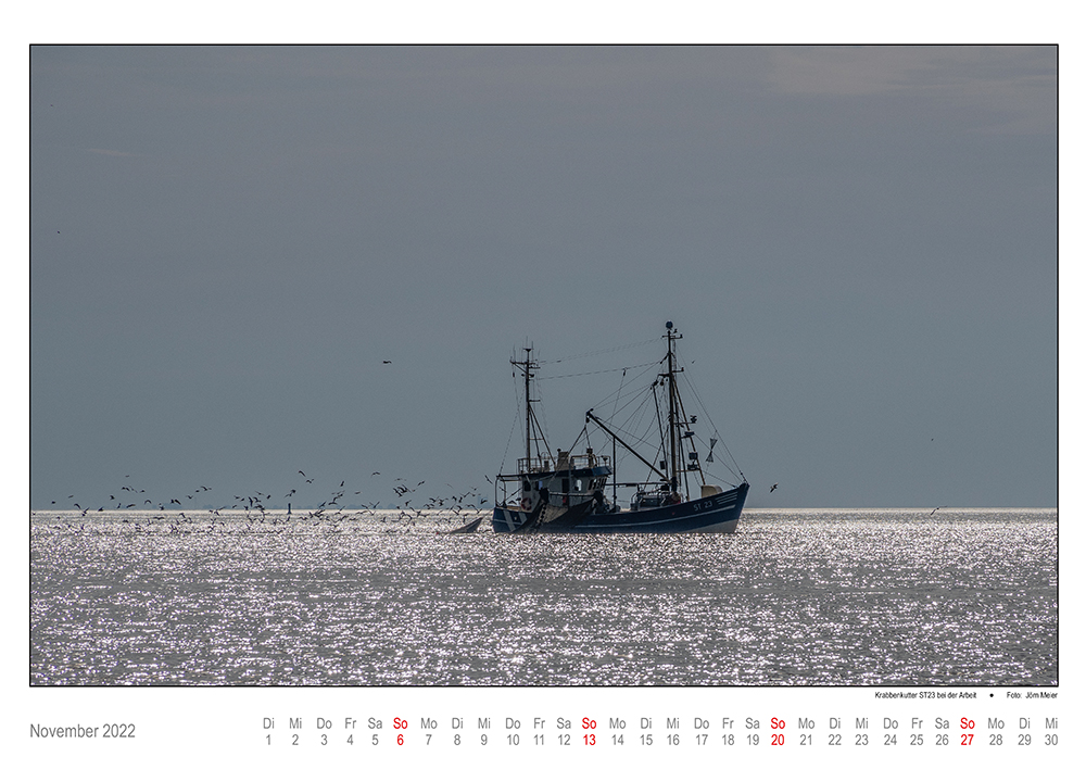 November 2022: Krabbenkutter ST23 bei der Arbeit. / Foto von Jörn Meier.