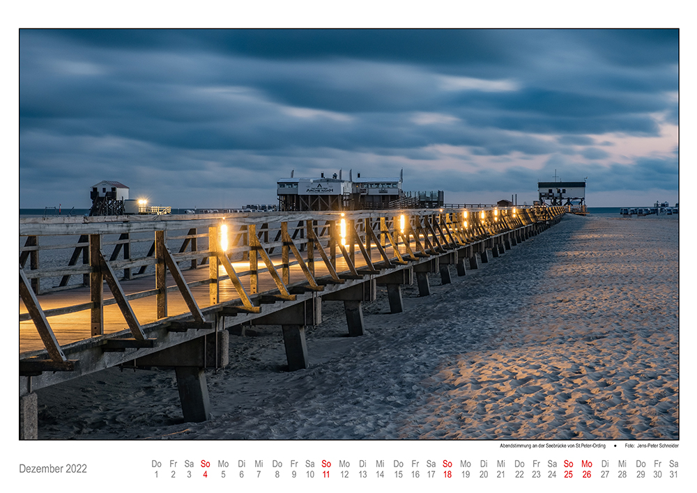 Dezember 2022: Abendstimmung an der Seebrücke von St.Peter-Ording. / Foto von JP Schneider.