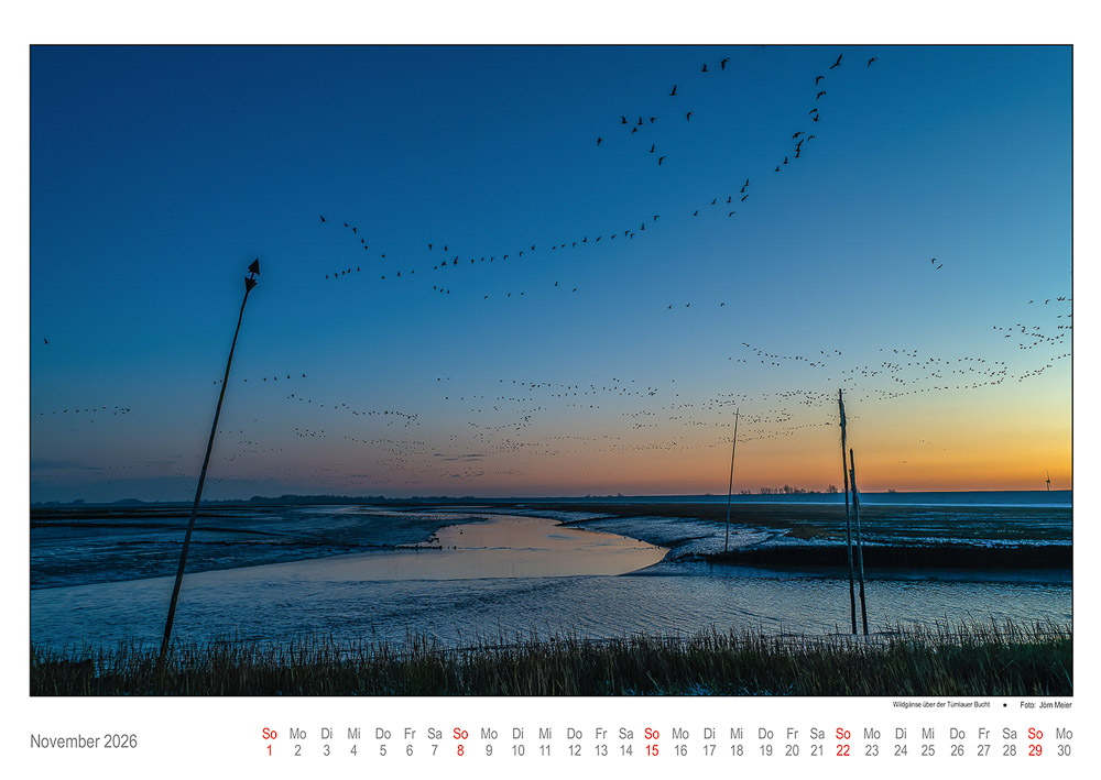 November 2026: Wildgänse über der Tümlauer Bucht / Foto von Jörn Meier
