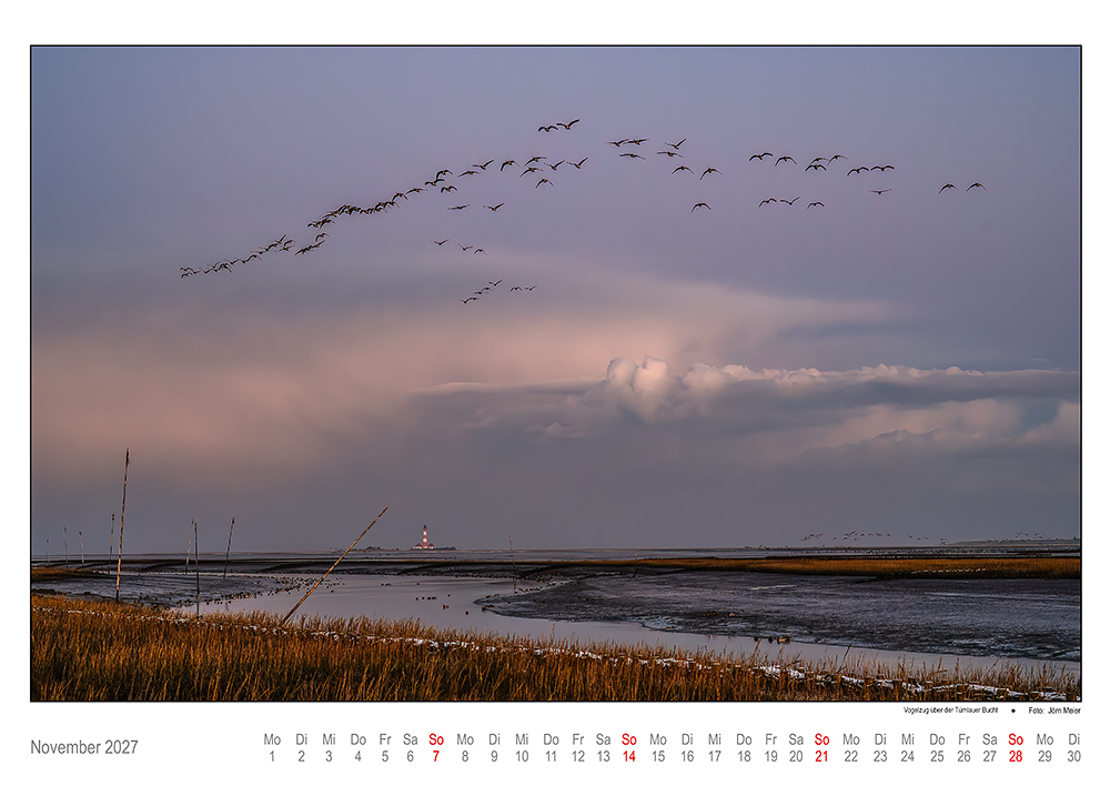 November 2027: Vogelzug über der Tümlauer Bucht / Foto von Jörn Meier