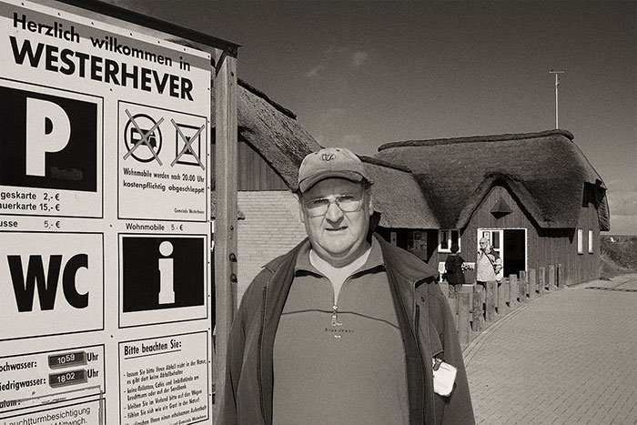 seiner Arbeitsstätte, dem großen Parkplatz in Westerhever.