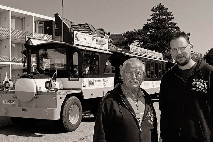 Thomas Westphalen (rechts) und Artur Schulz bieten den Urlaubsgästen in St.Peter-Ording interessante Rundfahrten mit dem "Hitzlöper" an.