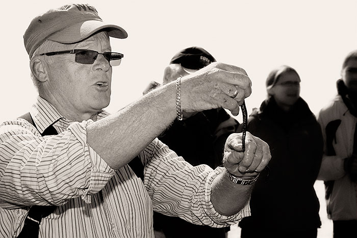 Auf diesem Foto präsentiert er den "Klassiker", einen Wattwurm. Nehmen Sie an