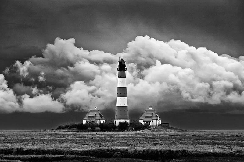 Leuchtturm Westerhever mit Novemberwolken 2007 / Foto