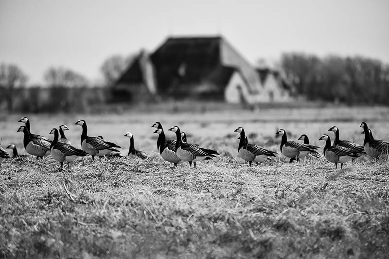 Nonnengänse vor dem Haubarg Rosenhof in Westerhever 2012 / Foto