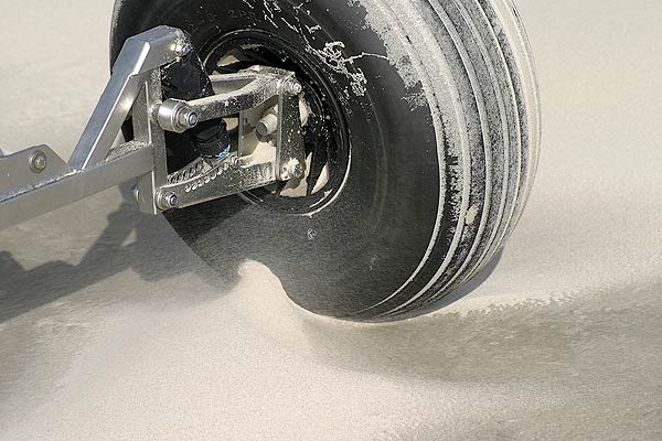 Windstärke 7 : Flugsand sammelt sich vor einem Reifen / Foto