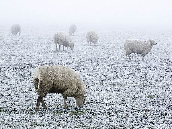 Schafe auf frostiger Weide